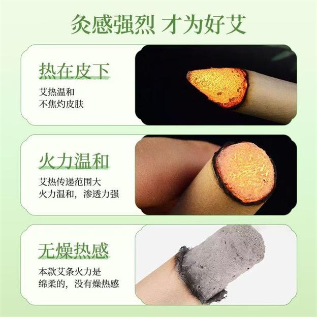 选用大别山陈年艾叶,灸感更好,艾绒细腻,蓬松柔软易成型;热在皮下,艾热温和,不焦灼皮肤;艾热传递范围大,火力温和,没有燥热感。